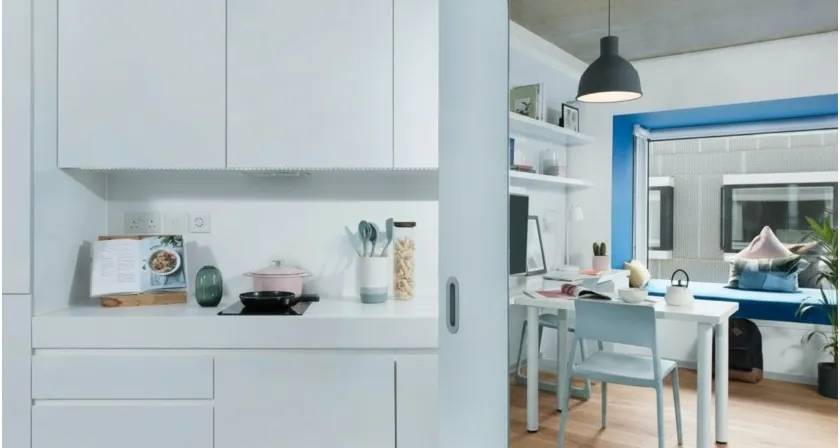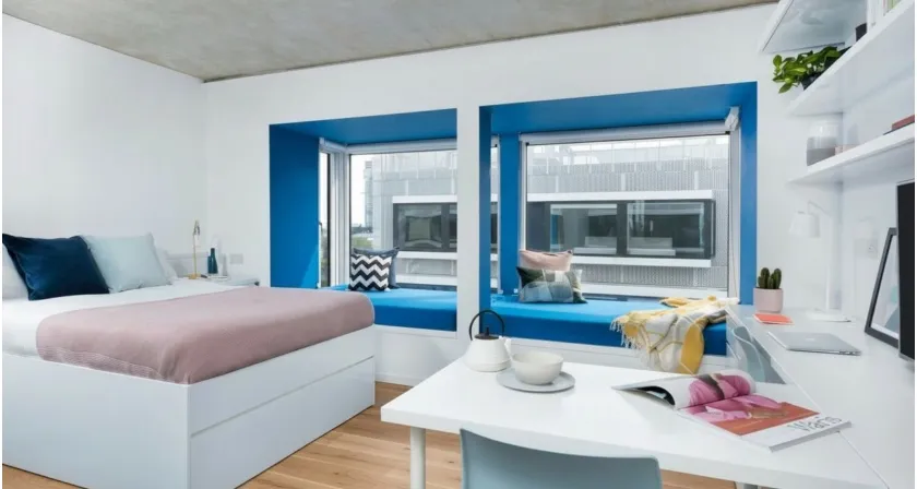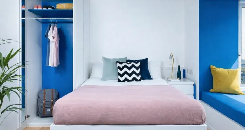 Your Studio will come fully furnished. This includes all the core furniture like mattress, kitchen appliances, desk chair, and built in storage. The Studio won’t include bedding, or kitchen equipment like pots and pans. Check out our checklist for move in day.